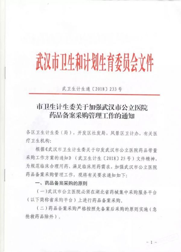 《关于加强武汉市公立医院药品备案采购管理工作的通知》