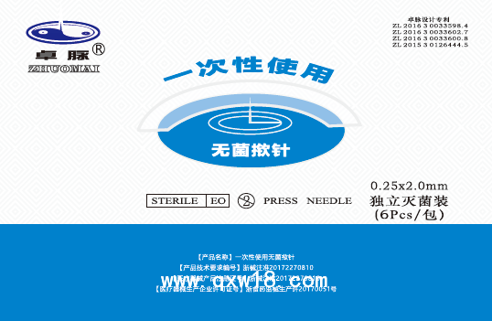 “卓脉”一次性使用无菌揿针,批准文号:浙械注准20172270810,医疗器械招商企业杭州领卓医疗器械有限公司招商产品。“卓脉”一次性使用无菌揿针招商详情请进入>>