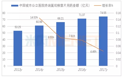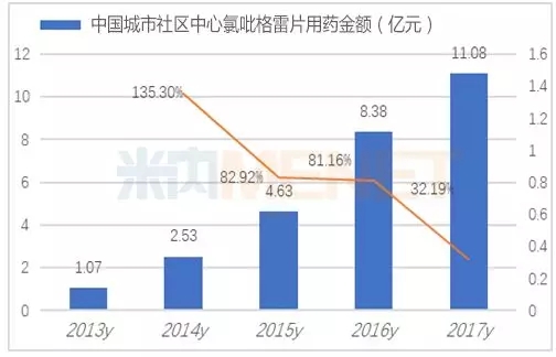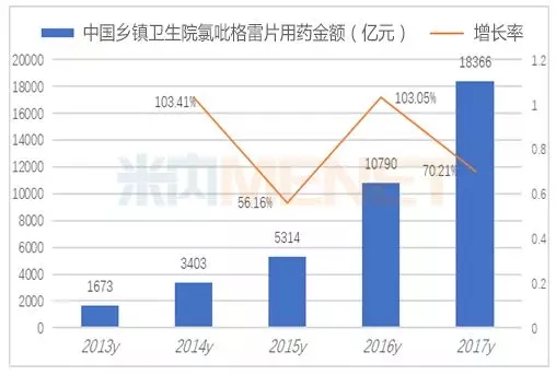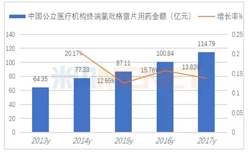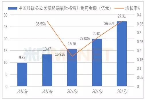 随着国家医保体系的全面覆盖,国家新政的陆续推出,基层医疗机构的药品市场逐年扩大,慢病群体将获益。据米内网数据显示,2017年县级公立医院硫酸氢氯吡格雷用药金额为27.31亿元,增长率为36.50%,同比上一年增长率提升了近10个百分点。