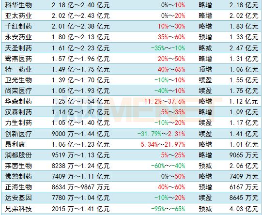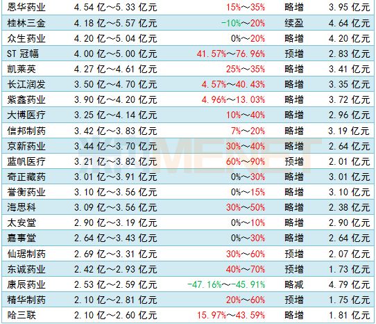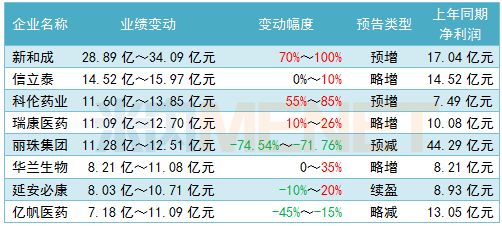 87家医药企业2018年业绩预告