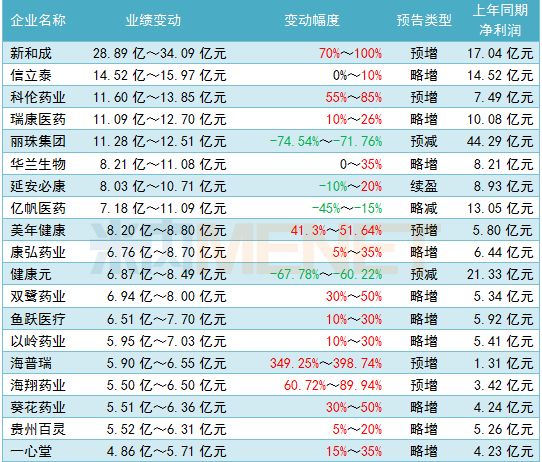 在65家业绩报喜的药企中,新和成、信立泰、科伦药业、瑞康医药、丽珠集团等8家业绩亮眼,预计净利润超10亿元。