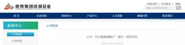 12月21日,地奥集团成都药业在官网发布消息《公司“对乙酰氨基酚片”通过一致性评价》。