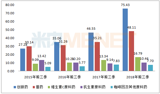 图1:2015-2018年同期石药集团各业务板块的收入情况(单位:亿港元)