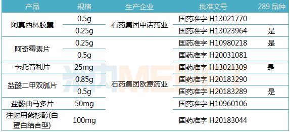 截至12月20日,石药集团已通过或视同通过一致性评价的产品有6个(9个品规),其中阿莫西林胶囊、阿奇霉素片、卡托普利片以及盐酸曲马多片为采购品种,最终流标品种为阿莫西林胶囊、阿奇霉素片以及盐酸曲马多片。