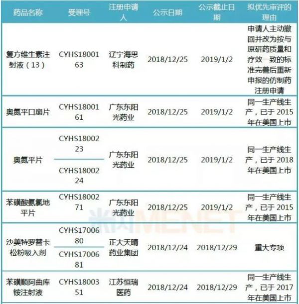 2018年,一致性评价进行得热火朝天,越来越多药企通过优先审评实现弯道超车。最新公示的8个拟优先审评的仿制药中,东阳光药业奥氮平口崩片、奥氮平片、苯磺酸氨氯地平片,恒瑞医药的苯磺顺阿曲库铵注射液以及华海药业的替米沙坦氢氯噻嗪片均已在美国上市,且采用同一生产线。