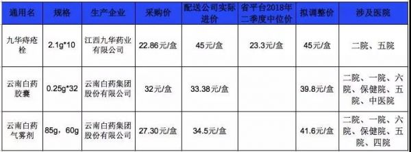 调价的三个药品分别是云南白药胶囊、云南白药气雾剂和九华痔疮栓。