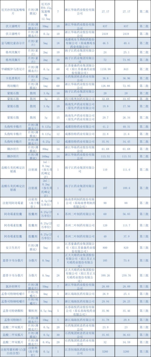 文件公布了议价目录的具体品种,此次共59个过一致性评价药品进入目录,其中,11个药品属于第一批次,33个药品属于第二批次,15个药品属于第三批次。