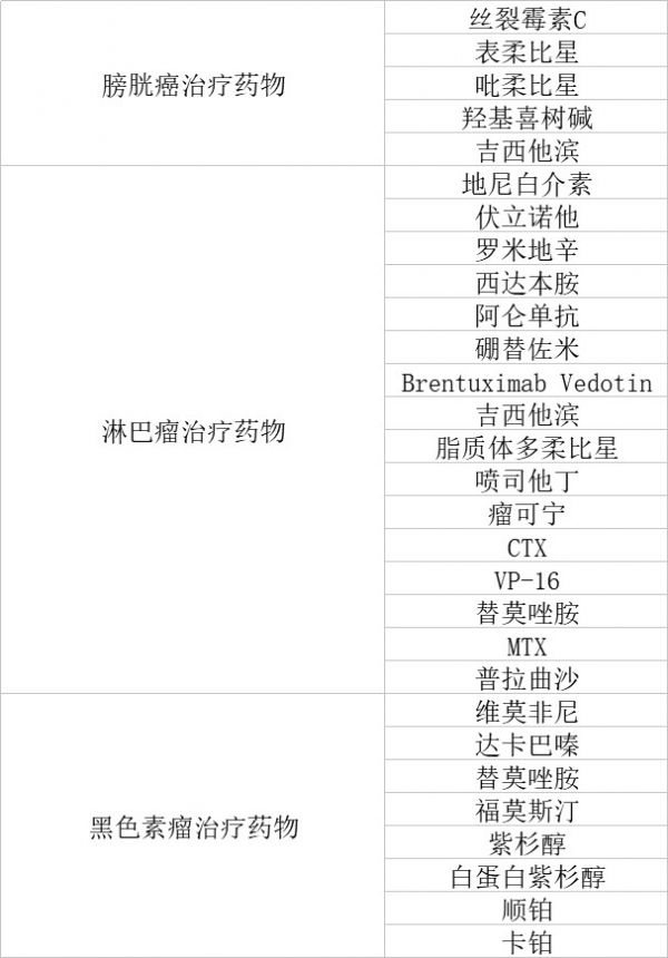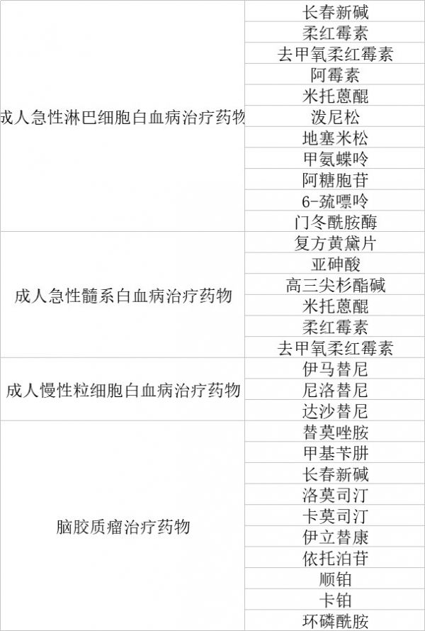 在相应癌症病种的诊疗规范中,卫健委针对性的给出了具体治疗药物的建议,下面是赛柏蓝梳理的表格。