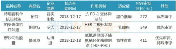 12月代表:特瑞普利单抗、帕妥珠单抗、罗沙司他
