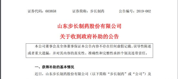 1月3日,步长制药发布公告称,近日,山东步长制药及合并报表范围内的子公司山东丹红、邛崃天银、通化谷红、通化天实、吉林步长、陕西步长高新、辽宁奥达、陕西步长收到政府补助人民币121651595.63元(未经审计)。