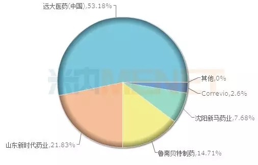 替罗非班注射剂有五家生产企业,其中,远大医药(中国)占据了“半壁江山”,市场份额达53.18%,此外,还有山东新时代药业、鲁南贝特制药、沈阳新马药业和Correvio。
