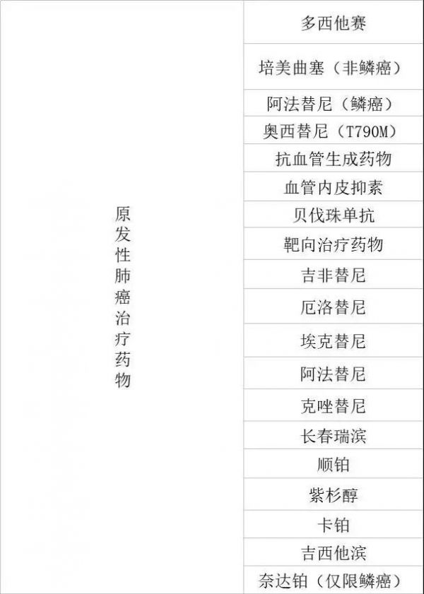 在相应癌症病种的诊疗规范中,卫健委针对性的给出了具体治疗药物的建议,培美曲塞、阿法替尼、多西他赛、奥西替尼、吉非替尼、长春瑞滨、顺铂、紫杉醇等、贝伐珠单抗、靶向治疗药物等多款抗癌药被点名。