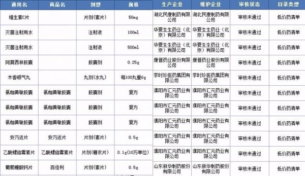 下附低价药补充挂网采购资格审核未通过的18品种