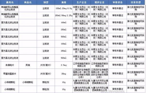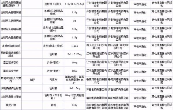 附:直接挂网采购(第七批)资质审核未通过的105个品种