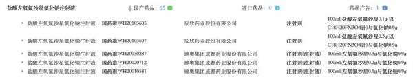 盐酸左氧氟沙星氯化钠注射液为四川科伦首家申报,目前国内共有95个生产批文,近20家企业。