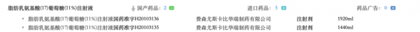 在药监局官网查询,脂肪乳氨基酸(17)葡萄糖(11%)注射液共有2个国产批文,5个进口药品的批文。