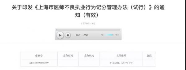 由此看来,上海市模仿了交规驾驶证扣分的方式,针对医生的执业行为进行考核和监督。