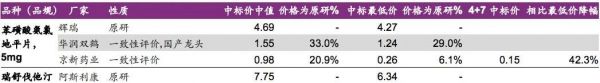 表2:国内仿制药和原研药价格差异情况(单位:元/片)