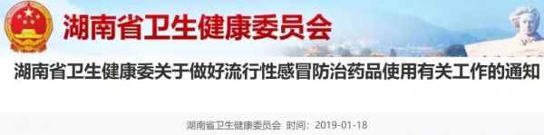 1月18日,湖南卫健委发布《关于做好流行性感冒防治药品使用有关工作的通知》。