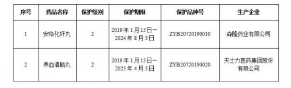 根据《中药品种保护条例》第十六条及有关规定,经国家中药品种保护审评委员会委员审评、国家药品监督管理局核准,对以下2家企业生产的2个中药保护品种继续给予保护: