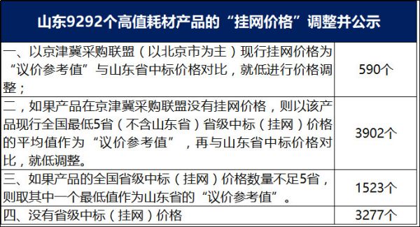 而就在去年12月底,山东省公共资源交易中心发布《关于公示山东省高值医用耗材挂网产品“议价参考值”的通知》,上万个高值耗材产品最低挂网价被曝光,其中有590个耗材产品是参照京津冀耗材联盟进行调价!