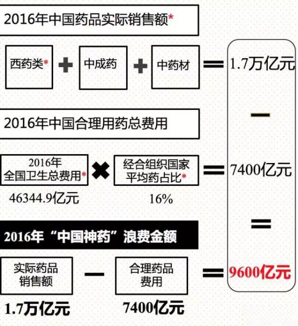 根据此前医学界智库的数据统计, “中国神药”每年浪费的金额高达9600亿元。