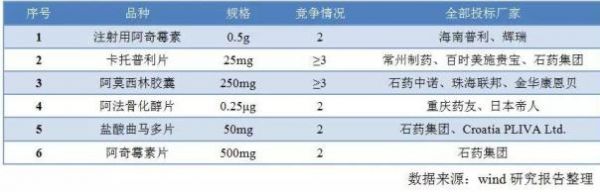 6个产品在议价环节流标,分别是石药的阿奇霉素、阿莫西林胶囊、盐酸曲马多片,重庆药友的阿法骨化醇片,常州制药的卡托普利片,海南普利的注射用阿奇霉素(见表2)。