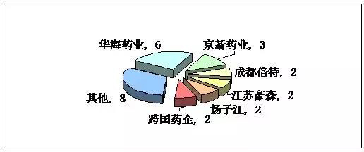 从中标品种所属的企业分布来看,华海药业的盐酸帕罗西汀片、利培酮片、厄贝沙坦氢氯噻嗪片等6个品种拟中标,京新药业的瑞舒伐他汀钙片、苯磺酸氨氯地平片和左乙拉西坦片共3个品种拟中标,成都倍特、扬子江和江苏豪森都分别有2个品种拟中标;跨国药企中仅2家企业各有1个品种拟中标,它们分别是阿斯利康的吉非替尼片和百时美施贵宝的福辛普利钠片(图1)。