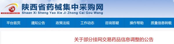 日前,陕西省公共资源交易中心发布《关于部分挂网交易药品信息调整的公告》。