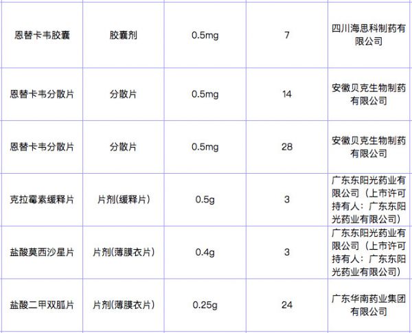 与原研药质量和疗效一致的仿制药仍按原中标或挂网结果执行的品种(第四批),无需填报全国最低5省入围价和参与报价。这类品种名单为: