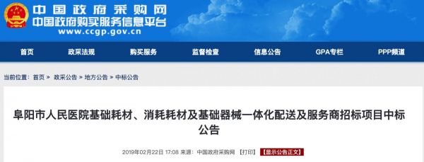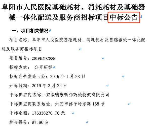 图源:阜阳市人民医院基础耗材、消耗耗材及基础器械一体化配送及服务商招标项目中标公告