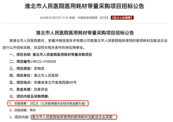 《淮北市人民医院医用耗材带量采购项目招标公告》