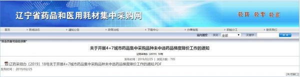 2月25日,辽宁省药品和医用耗材集中采购网发发布了《关于开展4+7 城市药品集中采购品种未中选药品梯度降价工作的通知》(以下简称《通知》)。