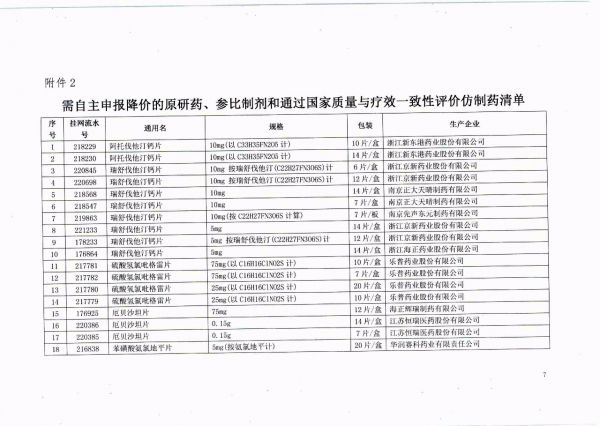 其中原研药、参比制剂、通过国家质量与疗效一致性评价的仿制药,由药品生产企业在规定时限内,按照4+7 城市联合采购办公室的梯度降价规则,以不高于已在上海完成梯度降价药品的价格自主申报降价(规格、包装有差比关系的根据差比价规则计算)。