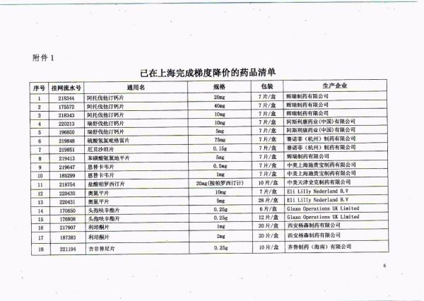 对于已经在上海完成梯度降价的药品,将执行上海降价结果。