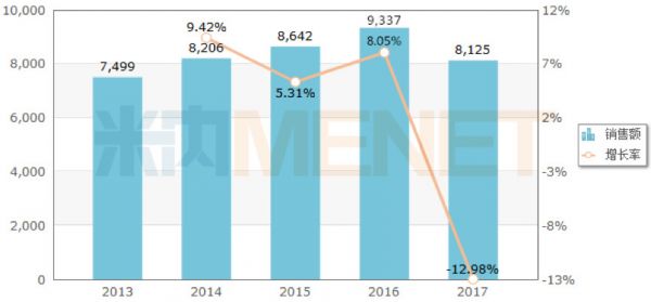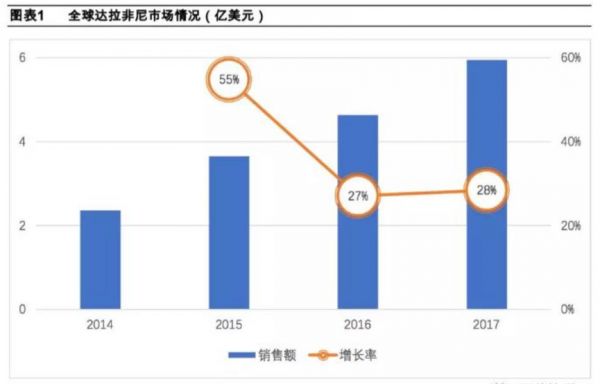 根据药物综合数据库(PDB)显示,2014-2017年达拉非尼一直保持稳步增长,2017年全球销售额近6亿美元,在经过2015年55%的高速增长后,2016~2017年逐渐趋于稳定。