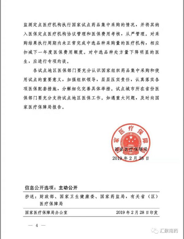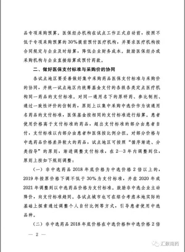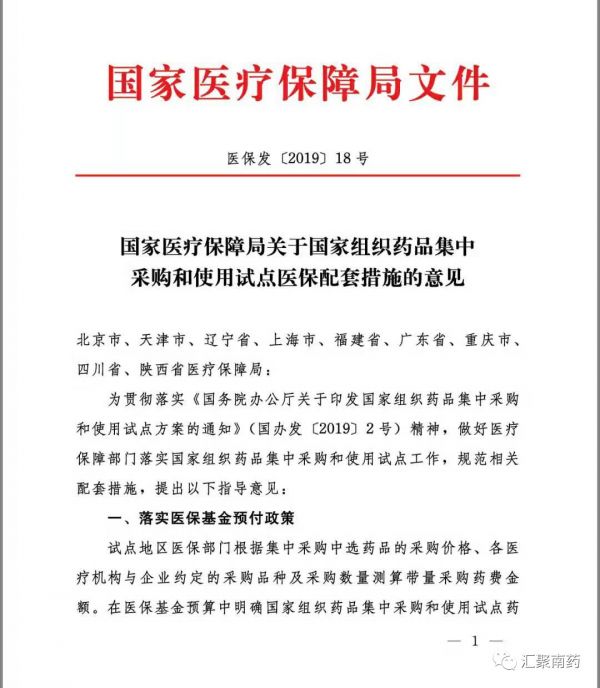 今天,“汇聚南药”公众号传出《国家医疗保障局关于国家组织药品集中采购和使用试点医保配套措施的意见》。