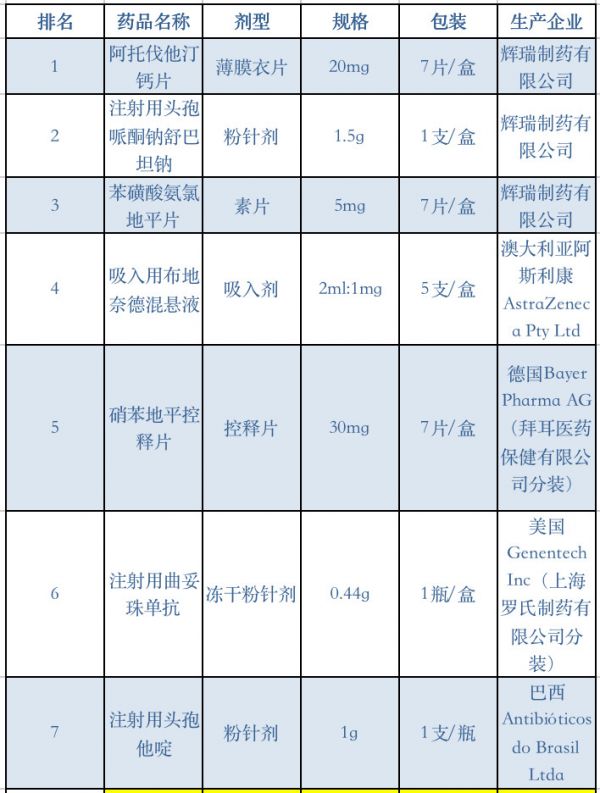 福建公布最新药品销售前20排名,辉瑞的阿托伐他汀钙片保持第一,多国内药企掉榜