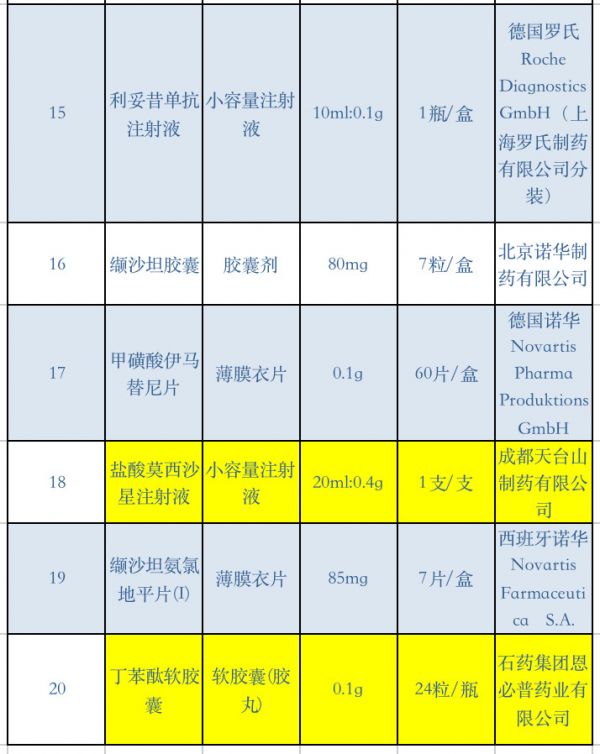 福建省药品联合限价阳光采购药品销售金额排名前20