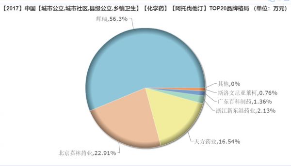 资料显示,阿托伐他汀市场规模近160亿元。据米内网数据,2017年辉瑞市场份额56.3%,嘉林 22.91%,天方药业 16.54%。