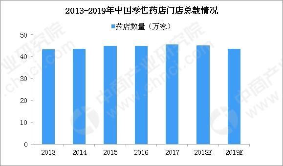 我国零售药店的虽然发展时间较短,但成长速度快,零售药店网络已在全国铺开。2017年,我国零售药店数量(包括连锁企业下辖药店和单体药店)约为45.4万家,相较于2013年增加2.1万家。整体来看,从2013年到2017年,我国零售药店总数量处于相对稳定水平。因并购的影响,预计2018年中国零售药店规模有所缩小,零售药店数量将达44.9万家左右,而2019年零售药店数量仍将会小幅下降,达到43.4万家左右。