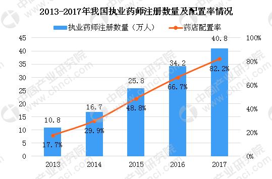 近五年,中国注册执业药师注册数量持续增加,2013年仅10.8万人,2017年增至40.8万人,国家食品药品监督管理总局执业药师资格认证中心公布的2018年11月全国执业药师注册情况显示,注册人数已达到46.4万人。从执业药师注册人数增长速度来看,估计到2020年底,实现“十三五”对执业药师数量要求每万人口4名执业药师的目标估计没什么问题。