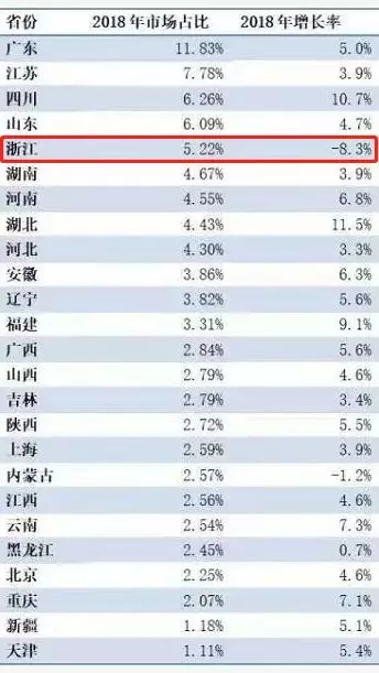 而从细分省份来看,浙江省受政策影响最严重,市场规模下降8.6%。