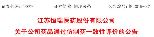 ▍恒瑞替吉奥胶囊,通过一致性评价 3月13日,江苏恒瑞发公告宣布:“替吉奥胶囊”通过仿制药一致性评价。