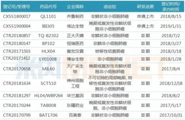安维汀于2010年2月26日获得国家药监局批准进入国内市场,近三年来,该产品在中国公立医疗机构终端的销售额突飞猛进,年均增长率达到两位数,2017年以近60%的降幅纳入国家医保目录,增量可期。目前国内市场有超过20家企业在布局安维汀生物类似药,齐鲁制药、信达生物已提交上市申请,此外正大天晴、恒瑞医药、复宏汉霖等9家企业均进行到III期临床试验,布局的适应症包括肺癌、直肠癌等。