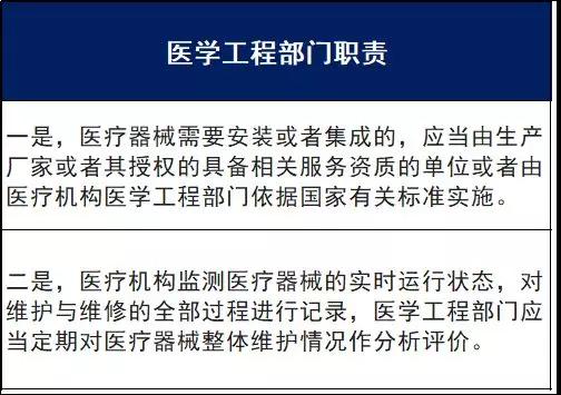 而在此次二级以上医院器械管理委员会中承担主要任务的就是医学工程部门。《办法》规定,二级以上医院的医学工程部门应当配备与功能、任务、规模相适应的医学工程及其他专业技术人员、设备和设施。