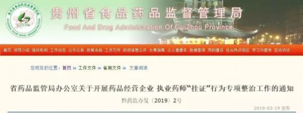 当天,国家药监局公布整治通知后,贵州省药监局立马下发《关于开展药品经营企业 执业药师“挂证”行为专项整治工作的通知》(以下简称《工作通知》),要求辖区单位按照国家要求即日起展开行动。