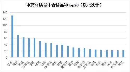 在监管高压机制下,中药材(包括饮片)领域存在的质量问题得到有效曝光,2018年国家药监局及各地方药监部门对药品生产、经营、使用单位开展了多期抽检。药品抽验不合格数量达3268批次,其中约有7成为中药材。地龙、白鲜皮、粉葛、红花等药材连续2年上榜质量不合格Top20;另有5家企业也再度上榜不合格企业Top20。