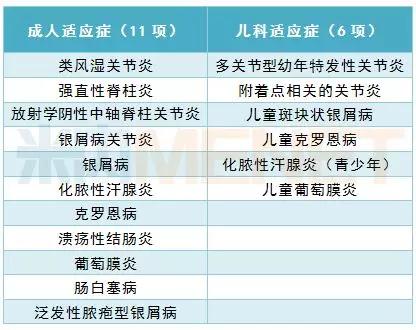 国内替代品种多也是修美乐销量惨淡的因素之一,在修美乐之前,FDA已经批准了英夫利西单抗和注射用依那西普两个TNF抑制剂。英夫利西单抗在国内获批的适应症有类风湿关节炎、强直性脊柱炎、银屑病等。依那西普注射液获批的适应症有类风湿关节炎和强直性脊柱炎。