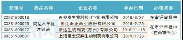 在报产的4家企业中,百奥泰、海正药业、信达生物的阿达木单抗注射液已被CDE纳为优先审评品种。百奥泰是首个递交阿达木单抗生物类似药上市申请的国内企业,也是该产品首个获优先审评的企业。若进展顺利的话,百奥泰有望在2019年收获首个国产阿达木单抗。